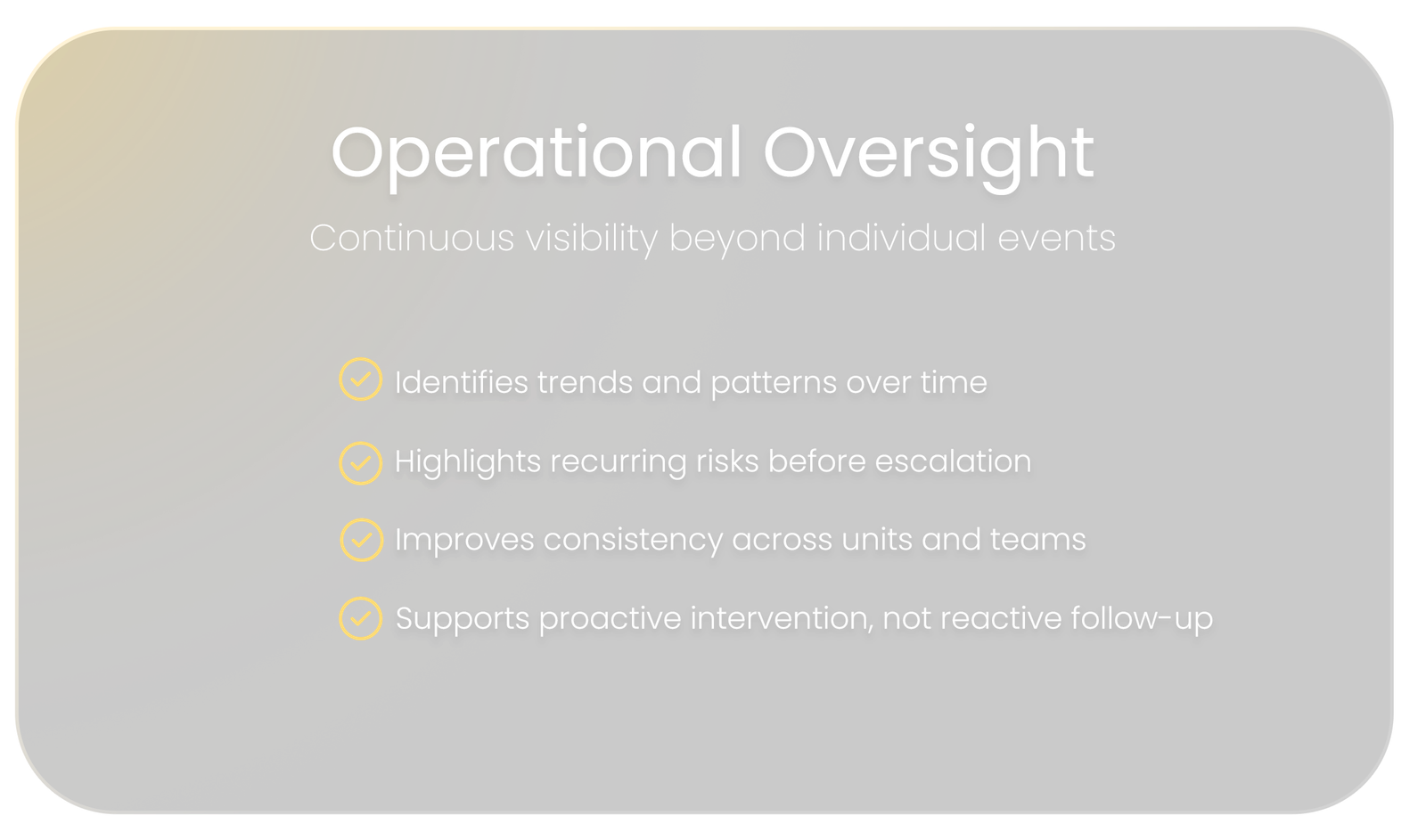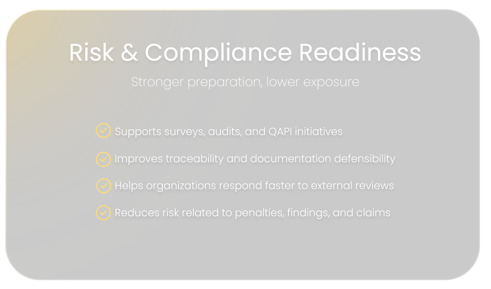 so teams can act before issues escalate into survey findings, penalties, or claims.