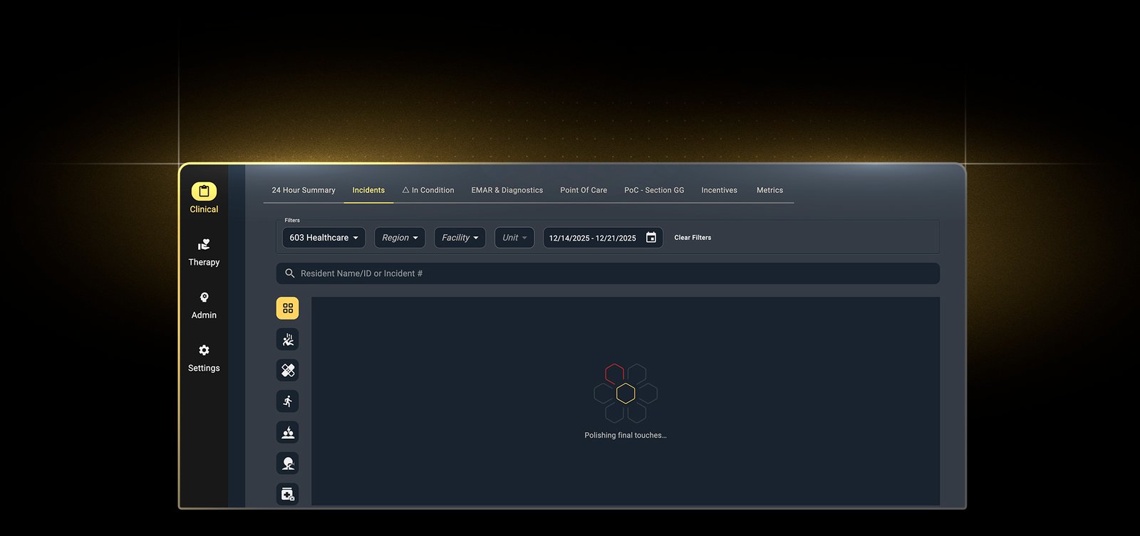 From documentation gaps to incidents and emerging risk — including falls, changes in health status, and mortality prediction.